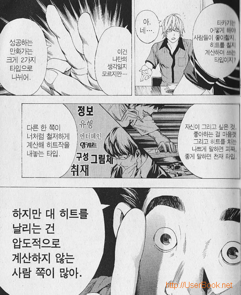 위 만화는 만화, 애니로 유명한 바쿠만이라고 젋은 두 소년이 최고의 만화가가 되기 위해서 노력하는 과정을 담은 책인데, 기획, 제작, 블로그, 개발 등에서도 많은 도움과 자극이 되는 내용인데 기회가 되면 한번 앞부분이라고 몇권 보시면 좋습니다.