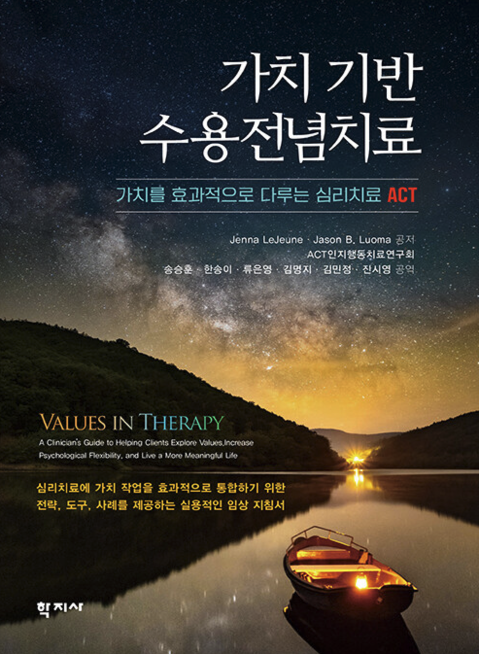 이전에 수용전념치료의 확장, 가치의 예술과 과학 - 조앤 달, 제니퍼 플럼, 이안 스튜어트, 토비아스 룬드그렌 (지은이) 이라는 책이 출간이 된적이 있고, 이 책에서도 추천을 하는 책이지만 번역이 너무 별로였다는...