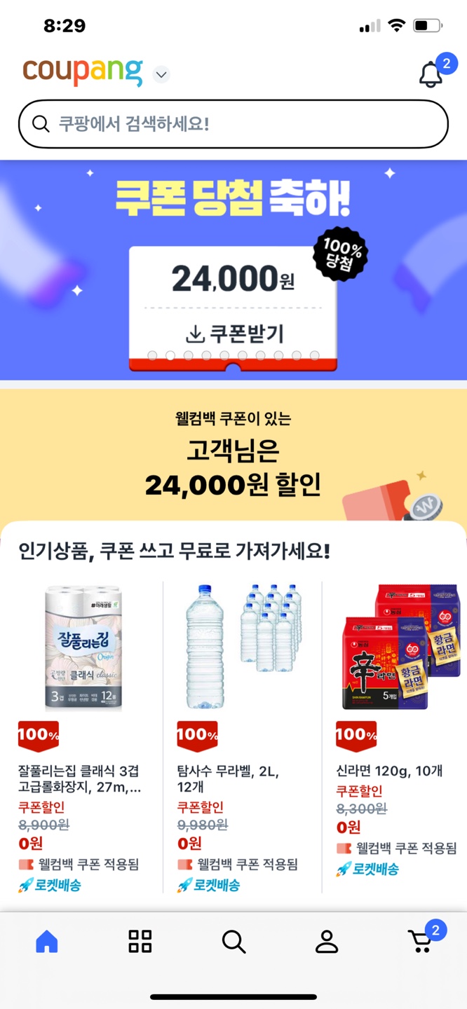 저같은 경우는 제 계정으로는 쿠팡 와우 멤버십까지 가입해서 사용하고 있는데, 간혹 바빠거나 깜빡해서 한달 이상 접속을 못하는 경우에도 웰컴백 쿠폰이 발급이 됩니다. 물론 위에 나온것처럼 큰 금액은 아니고, 몇천원 정도입니다.