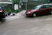 저지대 부근은 아직도 침수가 되어 있는 구간이 있습니다(2009년 7월 10일 오전 11시 현재)