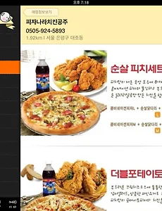 조카들이 여름방학이라고 놀러왔는데, 뭐를 먹고 싶냐고하니.. 한명은 치킨.. 한명은 피자를 사달란다...-_-; 통일을 하라고 할까하다가 간만에 왔으니 함 먹어보라고 아이패드의 배달의 민족이라는 app에서 찾아보니 피자나라치킨공주라는 집이 둘다를 세트로 판매를 하는듯... 한명숙피자치킨은 저번에 한번 먹어봤는데, 그리 기억에 남지 않아서 다른곳으로 주문을... 주문한 지점은 서울시 은평구 대조동에 위치한 연신내점인데, 전화번호는 02-352-9262... 앱에는 0505-924-5893으로 나와있는데, 이 전화번호로 연락을 하면 배달의 민족측으로 수수료가 빠지는듯...^^ 메뉴는 꽤 다양한데, 순살피치세트, 더블포테이토 피치세트, 쉬림프고르곤졸라 피치세트, 치즈 피자세트, 페퍼로니 피치세트, 핫리치 피치..