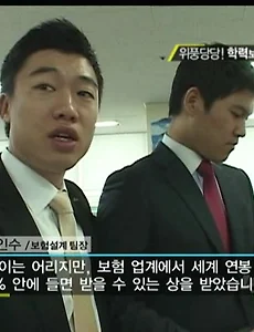 KBS VJ특공대 - 중국슈퍼베이비, 남아공월드컵 기회를 잡아라, 학력파괴 위풍당당 3인의 인생 성공기, 여름 맞이 몸매 사수 대작전 MDRT같이 세계영본 1%안에 들어가는 상도 받았는데, 미원 공업 고등학교를 졸업하고 24세의 나이에 억대 연봉의 보험왕에 오른 이명훈씨 고등학교때 학생회장도 하고, 대학도 합격은 했지만, 들어가지 않았다고 부모님이 말씀을... 보통 여자 보험 설계사들은 학력을 별로 따지지 않고, 아줌마들도 모집을 하지만, 남자들과 같은 경우에는 ING, AIG, 푸르덴셜같은 회사에 들어가려면 보통 대학을 졸업하고, 직장생활을 몇년 한후에나 들어갈수 있는데, 금융백화점 KFG라는 회사에서 아주 특별한 케이스로 뽑았다는데, 아마 뽑지 않았으면 타사 경쟁자가 됬을꺼라며 다행이라는 보험설계팀장..