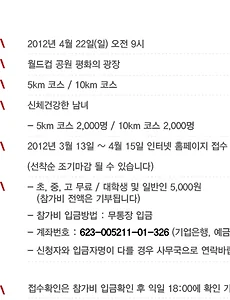 의료보험공단에서 보건의 날 40주년 기념으로 건강달리기 축제를 연다고 하네요. 2012년 4월 22일 오전 9시부터 월드컵 공원 평화의 광장에서 열리며 코스는 5km와 10km만 열리는 단축마라톤입니다. 접수기간은 3월 13일부터 4월 15일까지 접수를 하며, 참가비 5천원으로, 초중고 학생은 무료라고 하네요~ 단축마라톤에 참가하는 재미중에 하나는 기념품인데, 뭔지를 밝히지 않았는데, 참가자 전원에게 기념품을 주고, 이외에도 다양한 시상을 한다는데, 순위경쟁무관한상, 3대가족참가상, 다문화가족상, 다자녀가족상 등이 있다고 합니다. 코스는 평화의 공원에서 출발해, 하늘공원을 한바퀴돌면서 한강에도 잠시 들렸다가 돌아오는 방식이네요. http://nhicrace.or.kr/ 접수는 위 사이트에서 하는데, 카드..