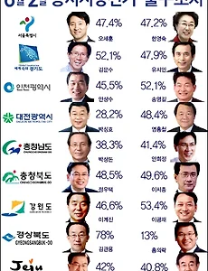 6월 2일 지방선거 중앙선거관리위원회(선관위) 실시간 개표 진행현황