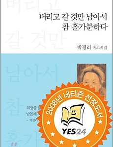 2년전쯤에 돌아가신 토지의 박경리씨의 유고시집입니다. 유고시집이라고는 하지만, 그냥 산문같은 느낌으로, 자신과 어머니의 추억과 인생, 그리고 삶에 대한 이야기와 그녀의 사진 등을 담아놓았습니다. 잔잔하면서도, 은은한 울림과 삶의 끝자락에서 지나온 삶을 회상하며 삶을 되돌아보는 한 사람의 이야기가 참 포근하게 다가오며, 많은 작품을 써오셨는데, 버리고 갈 것만 남아서 참 홀가분하다는 말이 의미심장하게 다가옵니다. 과연 내가 삶을 돌아볼 나이가 된다면, 박경리씨와 같은 마음가짐을 가지고 정리를 하고, 홀가분 할 수 있을지, 아니면 못다한 일들에 대한 후회와 남은것들에 대한 집착으로 가슴 아파할지 모르겠지만, 그녀의 이야기와 죽음에 대해서 생각을 해보면, 하루하루 최선을 다해서 살며, 죽는 그 날 홀가분한 마..