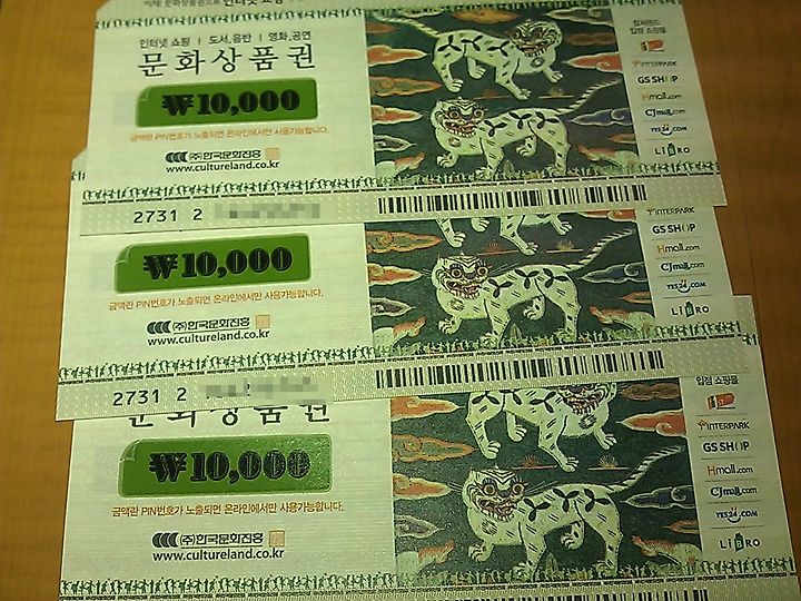 선물로 받은 문화상품권 3만원권 3장 사용기